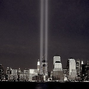 And that’s all. I ask my children if they remember that day. They don’t, but we watch the documentaries together every September 11th, gathered together in the family bed, so that they understand that this moment in history touched all of our lives. Look, Daddy works right there, look, Mommy used to live down that street. Last night, I took them outside to see the beam of light.