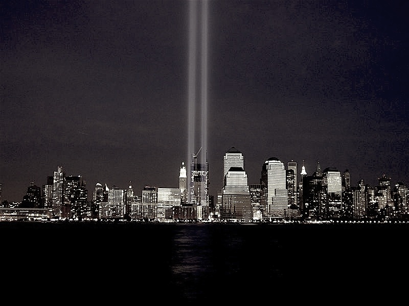 It’s 9/11. That beam of light in the distance emanates from Ground Zero.