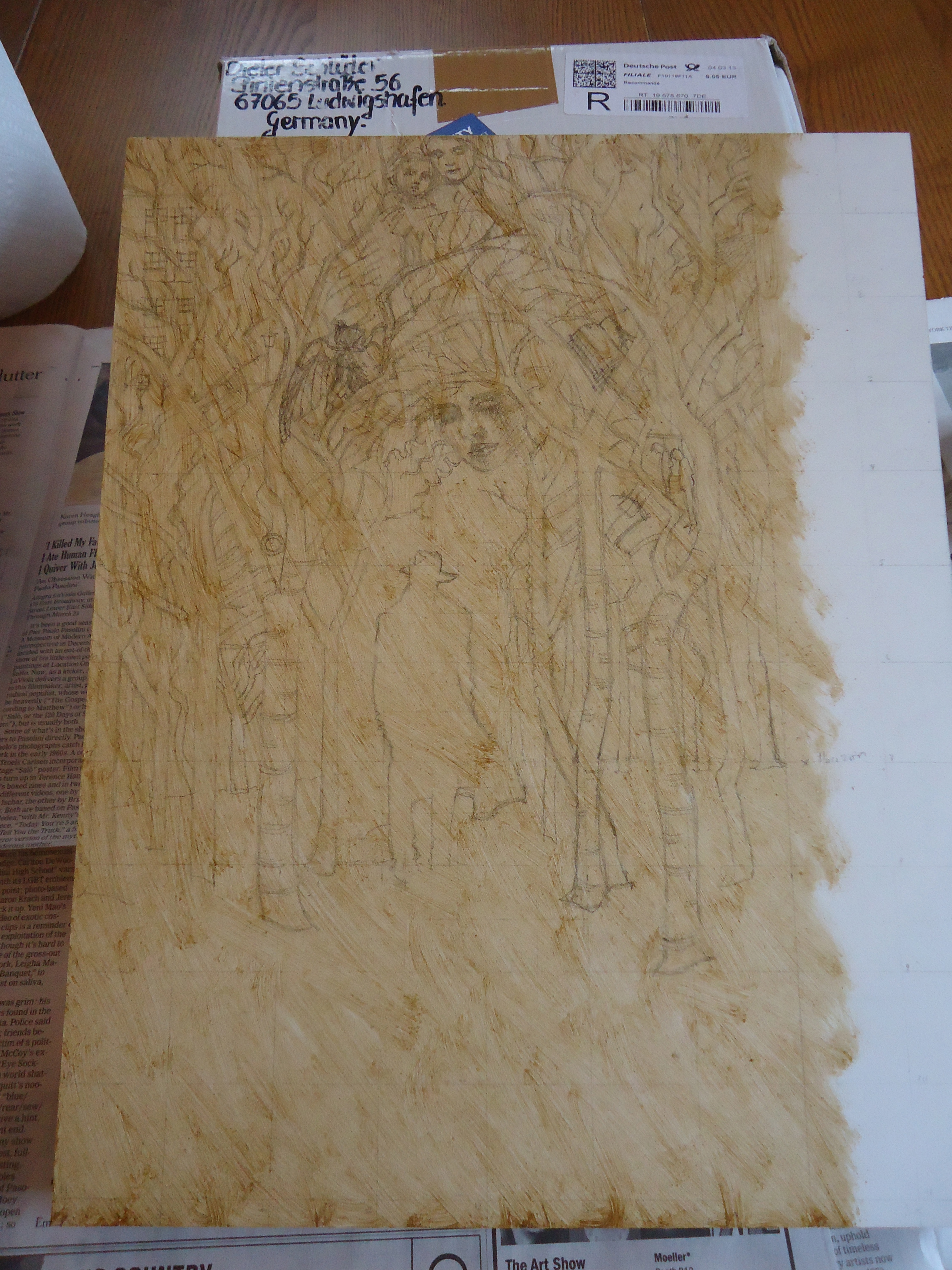 But no matter how beautiful this painting looks at 11″ X 14″, I have to face the reality of the internet. This cover has to be compelling when it is an inch high on a computer screen. To that end, I photograph it at every stage, reduce it, stare at the screen until my eyes water. How does it look at fifty percent? Twenty-five? Fifteen?